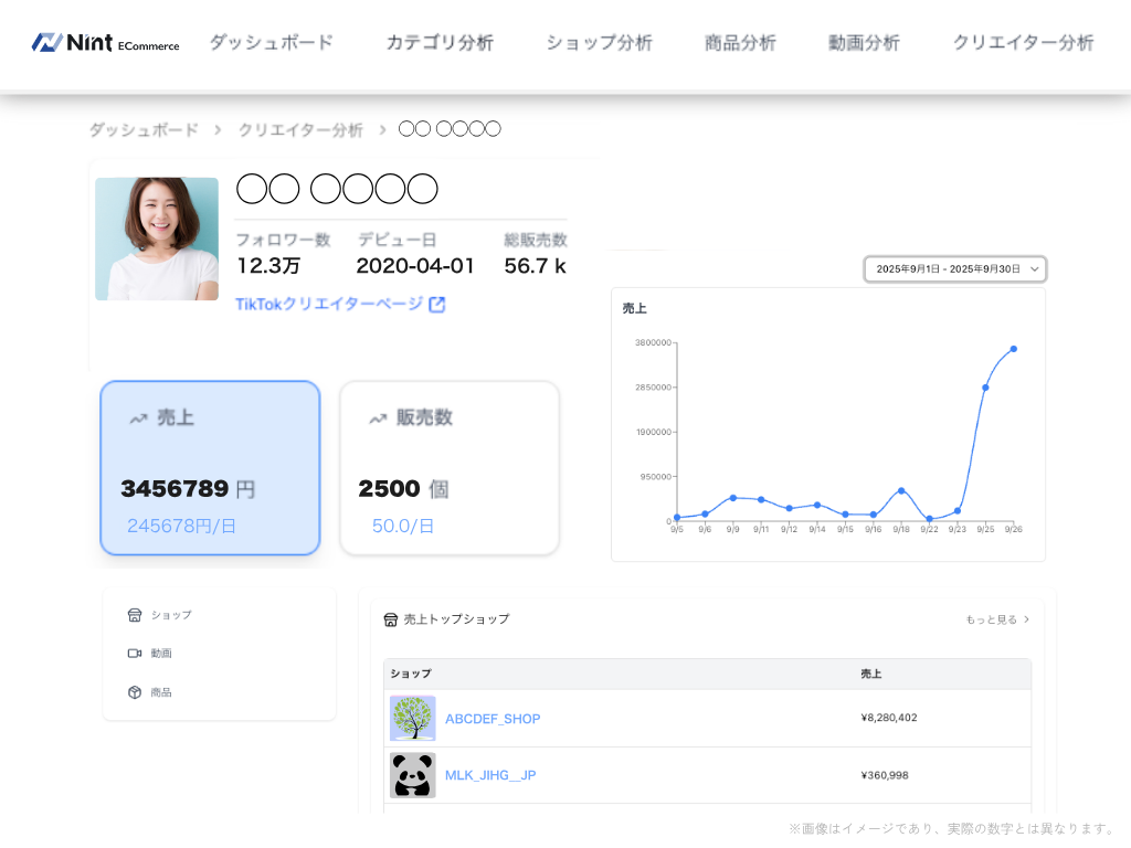 TikTok Shop上で展開される動画やクリエイターの活動を軸に、販売データを分析できるようにすることで、消費者の購買を動かす要因をデータから把握できます。