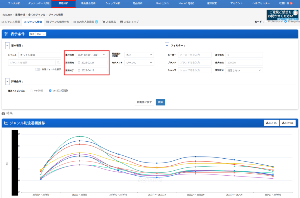 「業種分析:週次情報」は、Nint ECommerce Enterprise版をご契約の企業様向けに提供されている機能です。